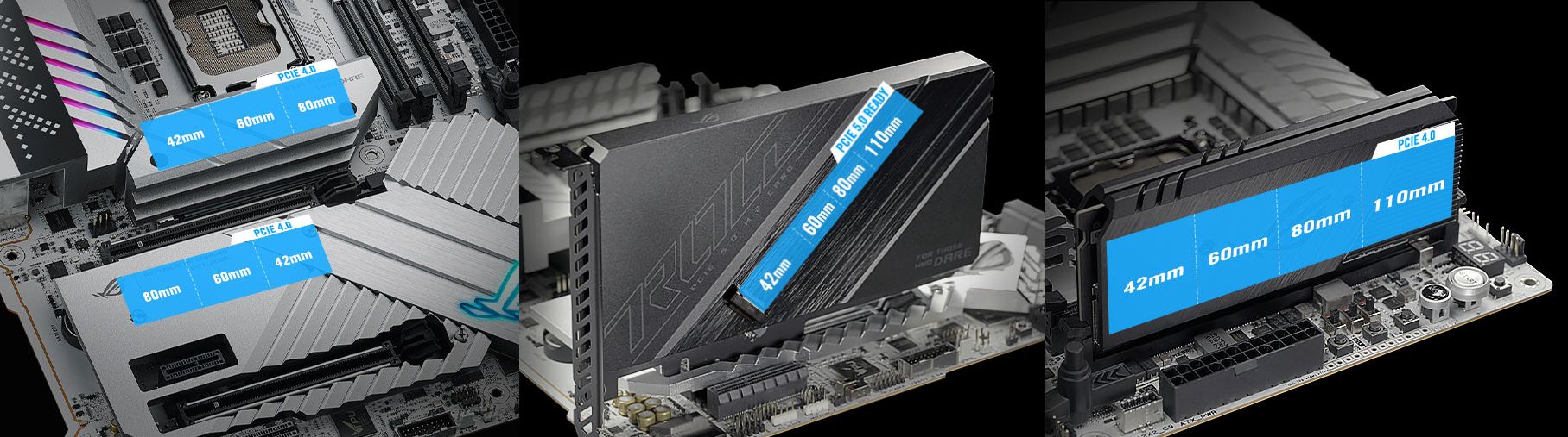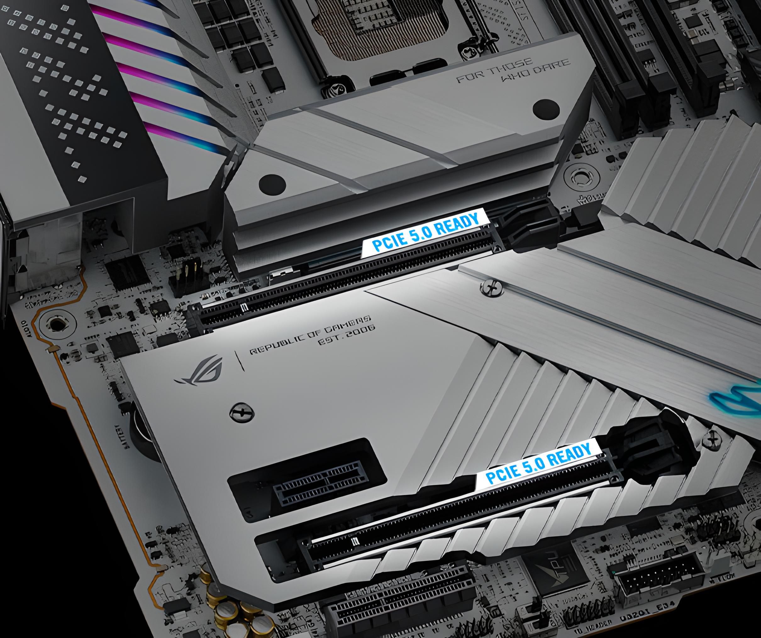 W pełni wykorzystując nowy standard, ROG Maximus Z790 Apex oferuje bogate wsparcie Gen 5, aby zapewnić nieograniczoną przepustowość najszybszym dostępnym dyskom SSD i kartom graficznym. Dwa wbudowane gniazda PCIe 4.0 M.2 z radiatorami zapewniają chłodzenie pamięci masowej o wysokiej wydajności.