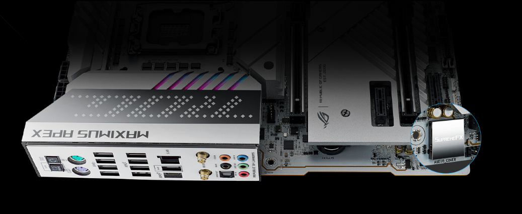 ROG SupremeFX to wyjątkowe połączenie sprzętu i oprogramowania, które zapewnia doskonały dźwięk. Implementacja SupremeFX w ROG Maximus Z790 Apex zawiera kodek ALC4080 z odtwarzaniem do 32-bitów/384 kHz. Wyjście na przednim panelu jest przesyłane strumieniowo przez wysoce zintegrowany wzmacniacz Savitech, który może obsługiwać szeroką gamę zestawów słuchawkowych do gier i słuchawek o wysokiej wierności.