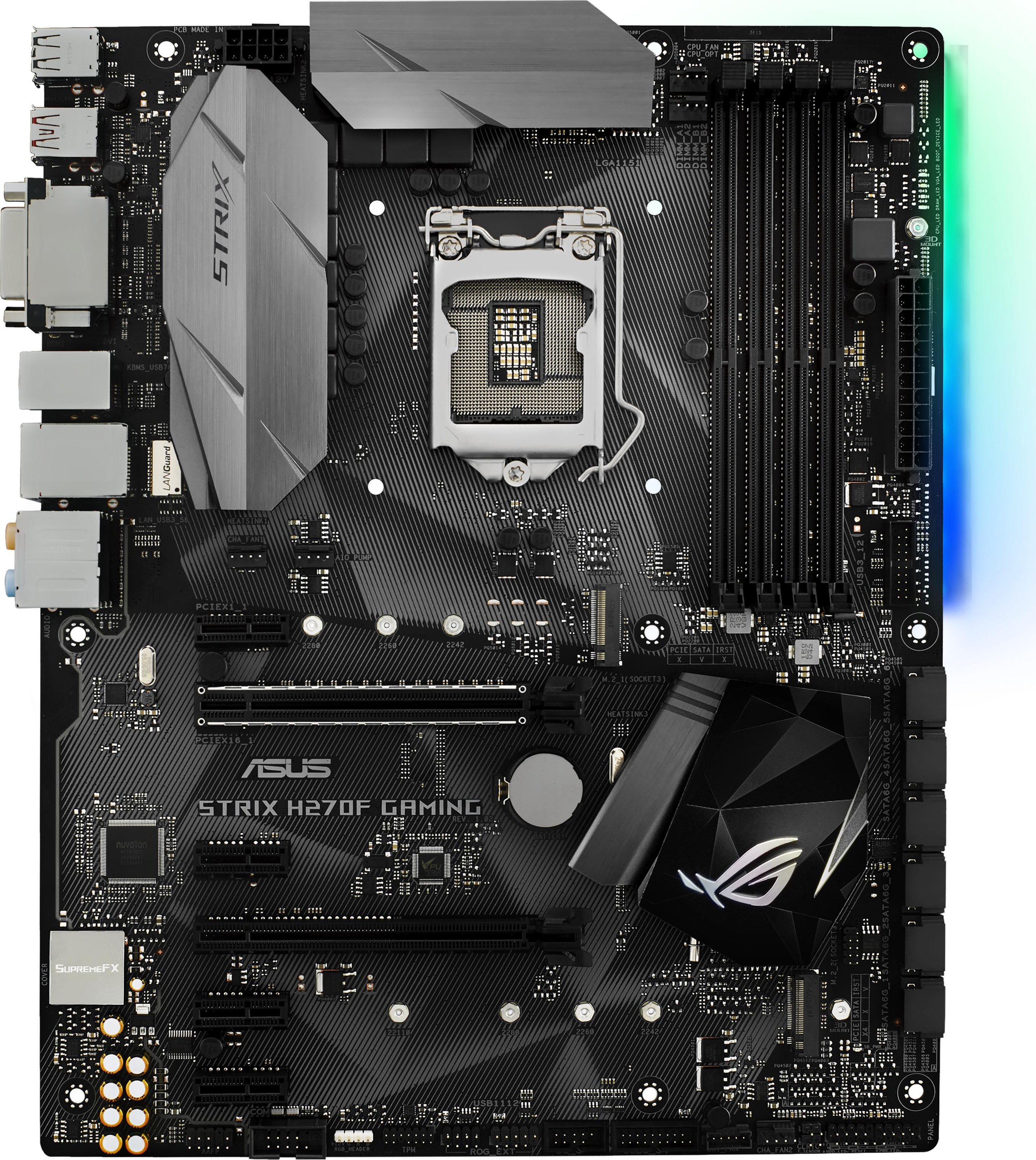 Asus STRIX H270F GAMING to płyta główna ATX oparta na chipsecie Intel H270 z gniazdem dla procesora obsługującego Socket 1151. Obsługuje pamięci DDR4. Posiada zintegrowaną kartę dźwiękową, gigabitową kartę sieciową i wyjścia na monitor przez złącza HDMI, DVI-D, DisplayPort.