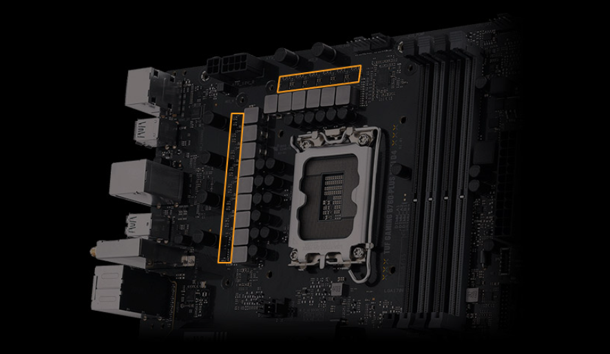 Asus TUF Gaming B760-Plus Wi-Fi D4 to uniwersalny produkt, który doceniany jest zarówno wśród graczy, ale także u osób wykonujących inne skomplikowane zadania na PC. Zasilanie 12+1, obsługa procesorów Intel Core 13. i 12. generacji i komponenty klasy wojskowej sprawiają, że płyta główna z serii TUF Gaming wykazuje się super wydajnością. Sprawdź wszystkie możliwości, jakie zapewnia Asus!