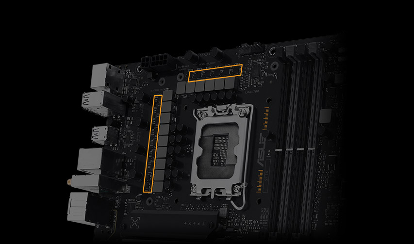 Płyta główna Asus z serii TUF Gaming wyposażona jest w radiatory zapewniające jeszcze większą stabilność i niezawodność płyty głównej. Możesz uczestniczyć nawet w wielogodzinnych maratonach gamingowych, nie przejmując się o zmniejszenie wydajności spowodowane przegrzaniem. Konstrukcja ma większe możliwości chłodzenia VRM-u, a do tego pozwala na zaawansowane sterowanie wentylatorami. Wszystkimi ustawieniami można zarządzać z łatwością za pomocą specjalnych narzędzi rekomendowanych przez producenta.
