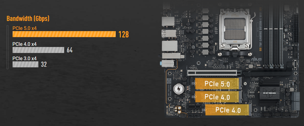 Jedną z kluczowych cech płyty jest obsługa pamięci RAM DDR5. Cztery sloty DIMM umożliwiają instalację do 256 GB pamięci RAM, co zapewnia ogromną przestrzeń do pracy wielozadaniowej. Płyta wspiera również podkręcanie pamięci do imponującej prędkości 8000+ MT/s, co w połączeniu z technologiami AMD EXPO™ i ASUS Enhanced Memory Profile (AEMP) pozwala na osiągnięcie maksymalnej wydajności. Niezależnie od tego, czy grasz, edytujesz wideo, czy renderujesz grafikę, superszybka pamięć RAM znacznie przyspieszy Twoją pracę.