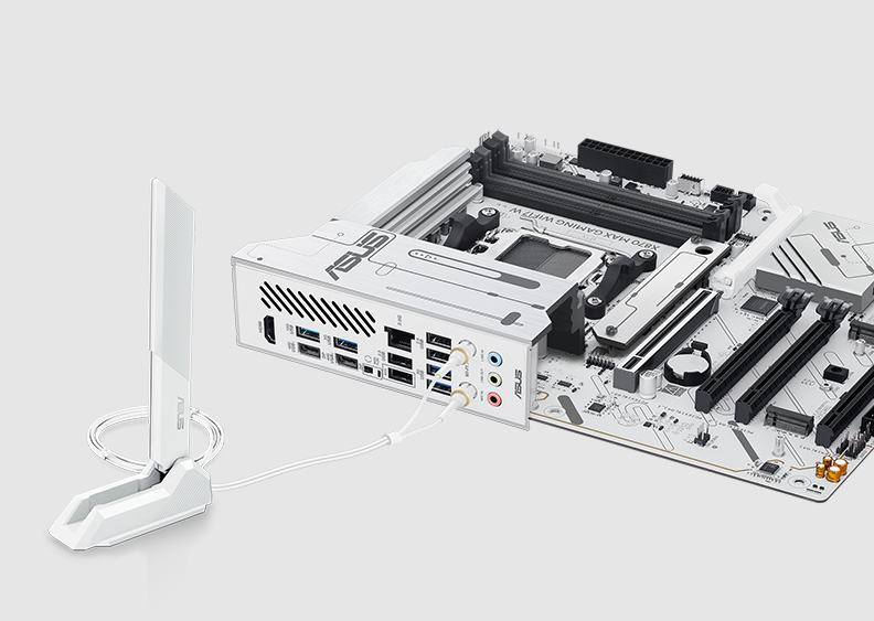 Kompleksowe opcje strojenia pamięci są podstawą płyt głównych z serii X870. X870 MAX GAMING WIFI7 W maksymalizuje potencjał modułów DDR5, od podstawowych po te o ekstremalnej prędkości. Dla modułów podstawowych bez obsługi EXPO™ funkcja ASUS Enhanced Memory Profile (AEMP) automatycznie wykrywa układy pamięci i dostarcza zoptymalizowane profile dla zwiększonej wydajności. Dla tych, którzy chcą przekroczyć standardowe prędkości DDR5, X870 MAX GAMING WIFI7 W oferuje rozbudowaną obsługę AMD Extended Profiles for Overclocking (EXPO™) oraz szeroki wachlarz ustawień UEFI dla dalszych usprawnień wydajności.