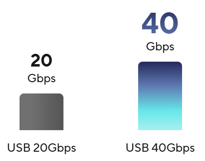 Każdy port zapewnia dwukierunkową przepustowość do 40Gbps dla najnowszych superszybkich urządzeń i dysków. Oba porty mogą być wykorzystane do podłączenia nawet dwóch zewnętrznych wyświetlaczy 4K.
