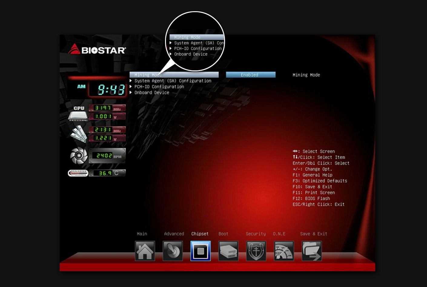 TB360-BTC Expert ma wyjątkowe ustawienie BIOS w trybie Mining Mode, które jest domyślnie włączone, co ułatwia konfigurację i skutecznie zwiększa wydajność kopania w zorganizowany sposób.