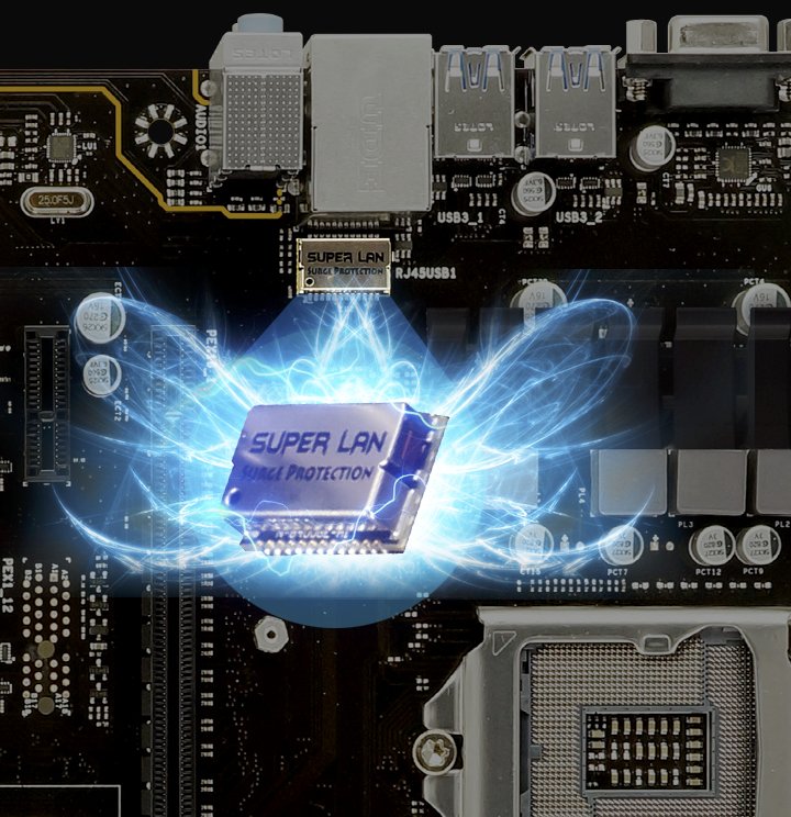 Systemy PC mogą zostać uszkodzone lub zniszczone przez przepięcia elektryczne. TB360-BTC Expert oferuje ochronę przed przepięciami SUPER LAN, która ogranicza przepięcia docierające do platformy kryptograficznej do bezpiecznego poziomu.