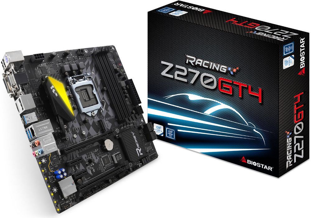Biostar Z270GT4 to płyta główna microATX oparta na chipsecie Intel Z270 z gniazdem dla procesora obsługującego Socket 1151. Obsługuje pamięci DDR4. Posiada zintegrowaną kartę dźwiękową, gigabitową kartę sieciową i wyjścia na monitor przez złącza HDMI, DisplayPort, DVI-D, VGA.