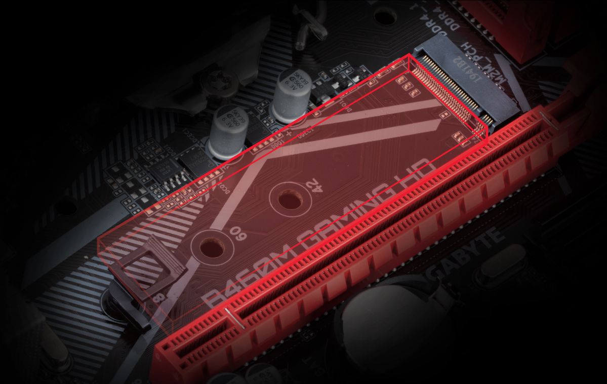 Wydajna maszyna potrzebuje odpowiedniej ilości szybkiej pamięci RAM. Na płycie Gigabyte znajdziesz dwa świetne złącza DIMM, obsługujące najwyższej klasy kości DDR4, każda do 64 GB. Wielokanałowa architektura Dual-Channel zadba o sprawny i płynny dostęp procesów do pamięci. To rozwiązanie pozwoli Ci wyposażyć sprzęt w taką ilość RAMu, która będzie wystarczająca dla wszystkich zastosowań domowych i biurowych. Będziesz mógł też cieszyć się płynną akcją w grach.