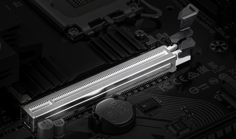 Główny slot PCIe 5.0 x16 oferuje dwukrotnie większą przepustowość w porównaniu do standardu poprzedniej generacji, osiągając prędkość transferu do 32 GT/s na linię. Rozwiązanie to zapewnia pełną kompatybilność z najnowocześniejszymi kartami graficznymi, eliminując ryzyko wąskiego gardła w przesyle danych. Dodatkowo slot został wzmocniony stalową osłoną Ultra Durable, która chroni gniazdo przed uszkodzeniami mechanicznymi przy montażu ciężkich układów GPU.