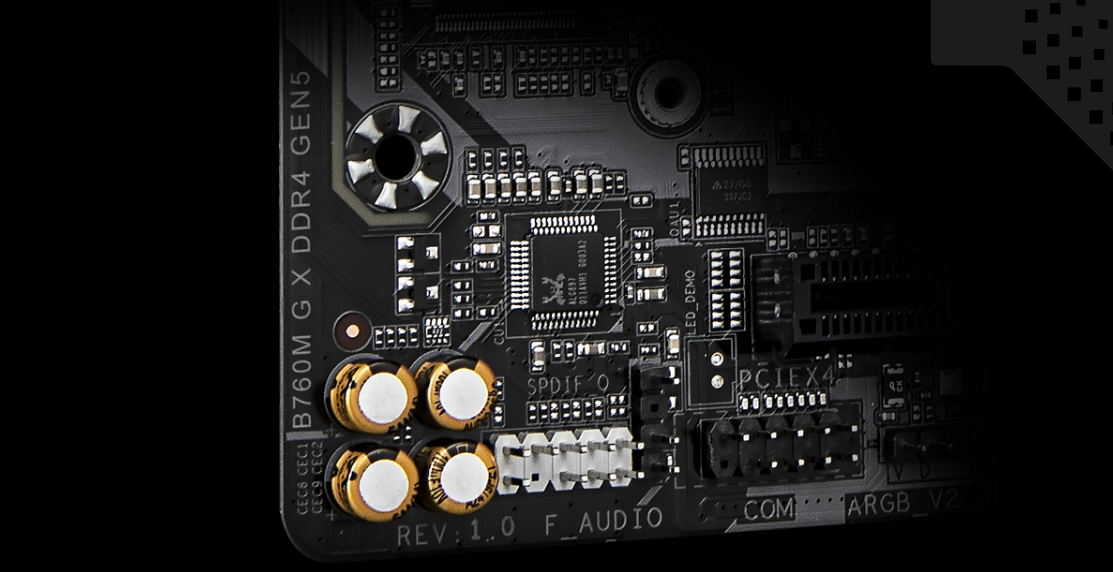 Zastosowanie wysokiej klasy kondensatorów audio oraz dedykowanej ścieżki izolującej komponenty dźwiękowe od reszty laminatu gwarantuje czyste brzmienie. Rozwiązanie Audio Noise Guard minimalizuje zakłócenia elektromagnetyczne, co przekłada się na lepszą separację dźwięków w grach oraz podczas słuchania muzyki. Jest to szczególnie odczuwalne przy korzystaniu z analogowych słuchawek o wysokiej impedancji.
