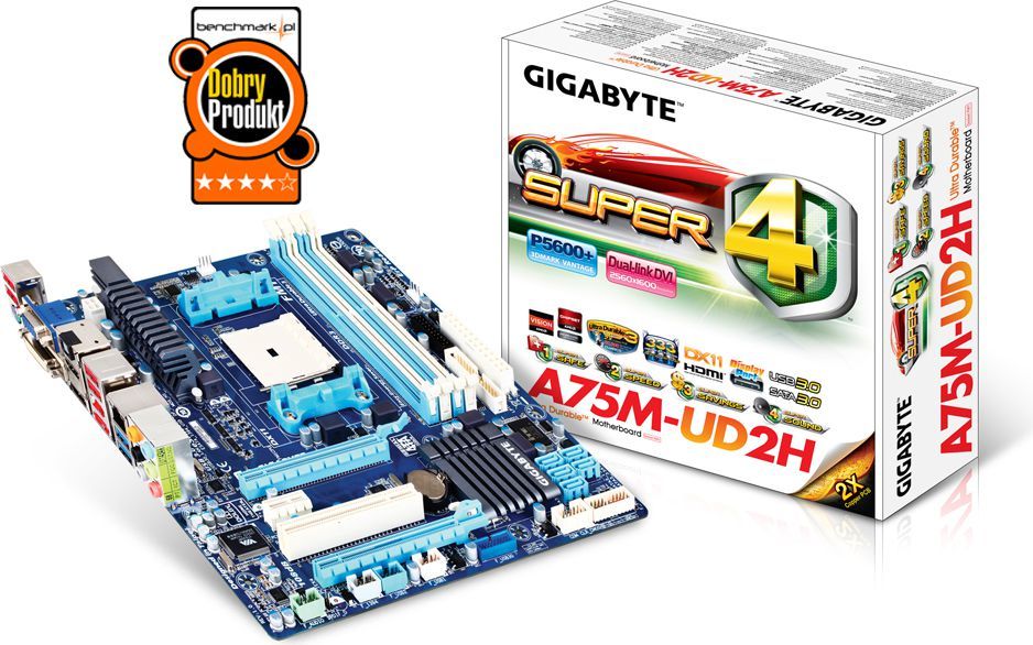 Płyta główna Gigabyte GA-A75M-UD2H AMD A75 Socekt FM1 (2xPCX/VGA/DZW/GLAN/SATA3/USB3/RAID/DDR3) mATX (GA-A75M-UD2H)