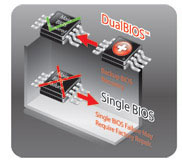 Produkty GIGABYTE z serii 8 wyposażono w technologię DualBIOS™, która zapewnia działanie komputera nawet w przypadku uszkodzenia jednej z dwóch zaimplementowanych na płycie kości BIOSu.