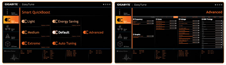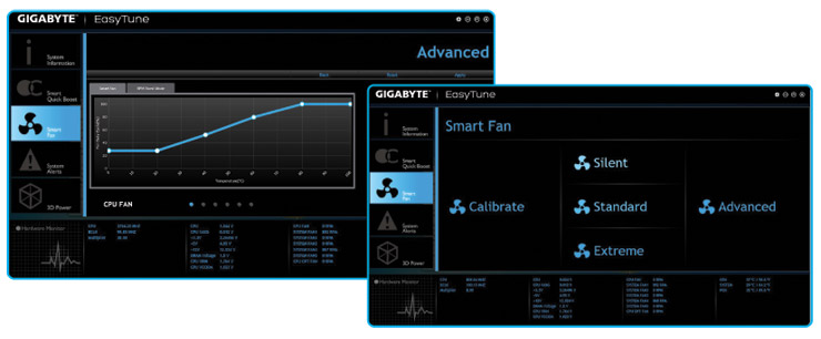 GIGABYTE's new Dashboard mode allows users to have complete access to all data related to your motherboards key components including CPU, graphics and memory clocks, temperatures and voltages.