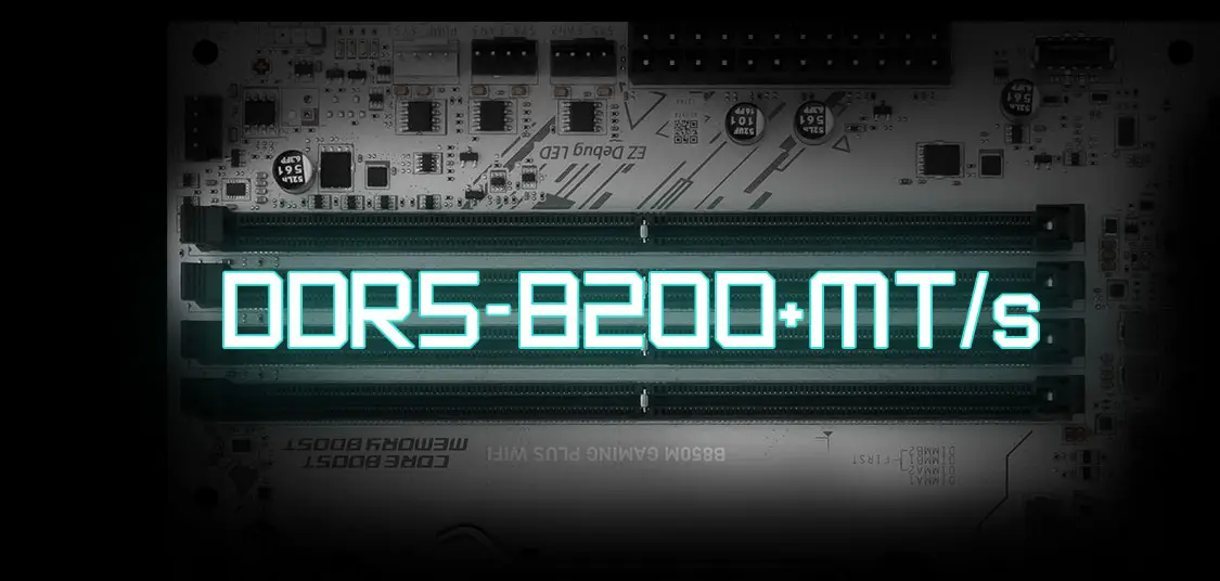 Wejdź na nowy poziom prędkości dzięki obsłudze najnowszych modułów pamięci DDR5. Płyta MSI B850M GAMING PLUS WIFI6E, dzięki technologii Memory Boost, umożliwia osiągnięcie taktowania nawet powyżej 8200 MHz w trybie OC. Cztery sloty DIMM obsługują architekturę Dual-Channel oraz profile AMD EXPO, co ułatwia optymalizację ustawień i uzyskanie maksymalnej przepustowości. Taka wydajność pamięci skraca czasy ładowania i zapewnia płynność działania systemu oraz aplikacji.