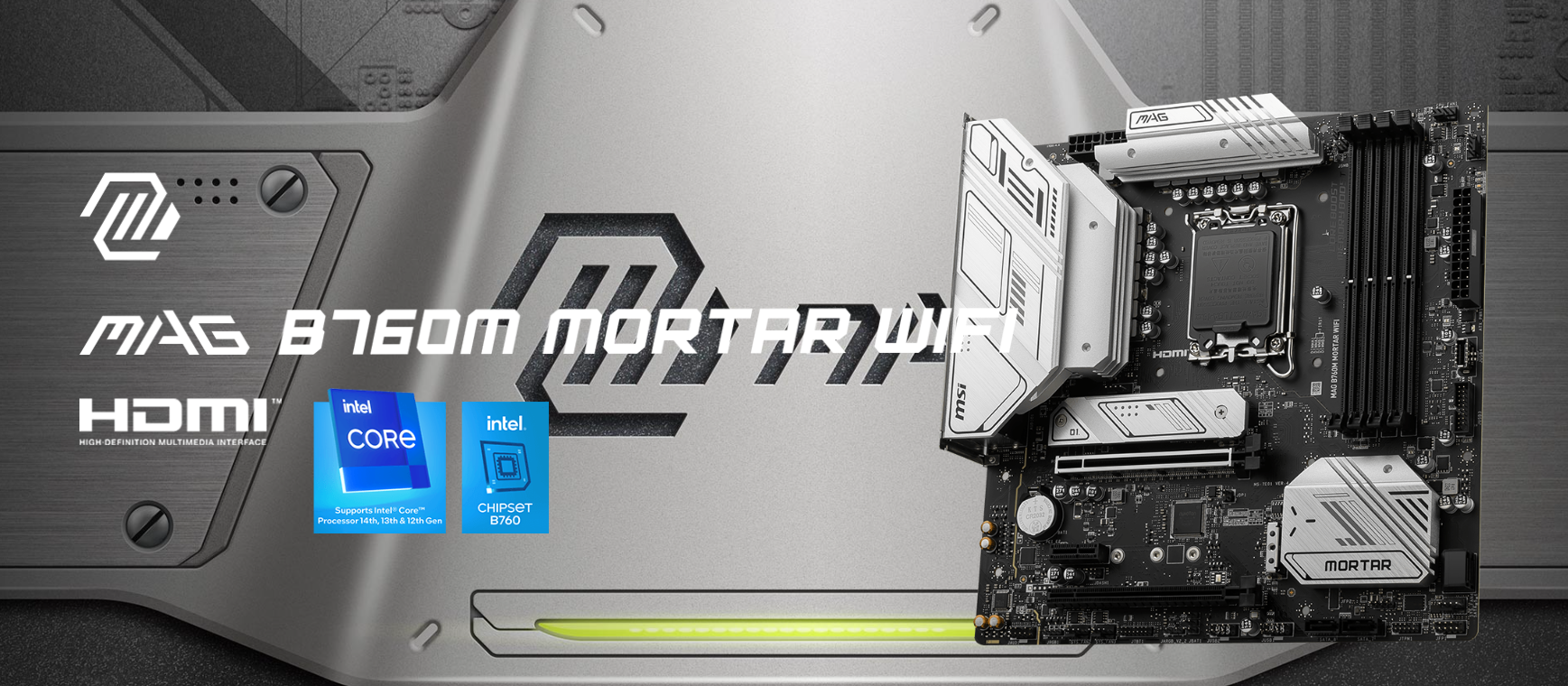 Seria MAG walczy u boku graczy w pogoni za honorem. Dzięki dodaniu elementów inspirowanych militariami, te produkty do gier odrodziły się jako symbol solidności i trwałości. MAG B760M MORTAR WIFI został zaprojektowany dla graczy, zapewniając stabilną, solidną i trwałą podstawę dla kompaktowych komputerów mATX. Wyposażony w rozwiązania Wi-Fi 6E, 2.5G LAN, DDR5, PCIe 5.0 i 2 złącza M.2, jest gotowy na procesory Intel® Core 14. i 13. generacji.