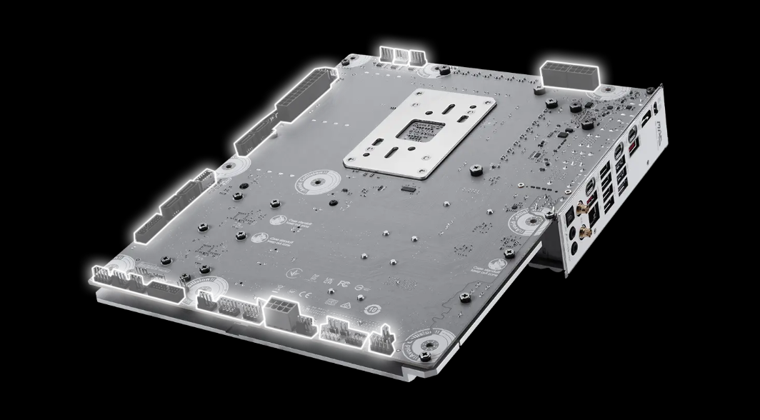 Płyta główna MAG X870E TOMAHAWK MAX WIFI PZ została wyposażona w konstrukcję z tylnym podłączeniem (back-connect), która przenosi złącza zasilania płyty głównej, zasilania procesora, piny wentylatorów, SATA i inne interfejsy na tył płypy głównej. Takie rozwiązanie ułatwia zarządzanie kablami, a jednocześnie zapewnia systemowi czystszy i bardziej estetyczny wygląd.