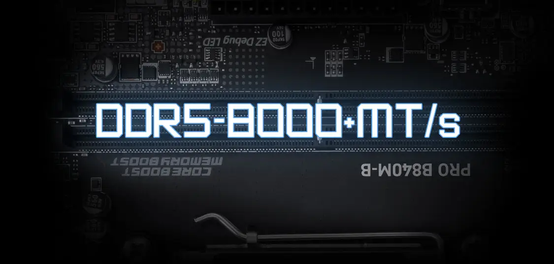 Płyta MSI PRO B840M-B wspiera nowoczesną pamięć RAM w standardzie DDR5. Dzięki dwóm gniazdom DIMM, możliwe jest zainstalowanie do 128 GB pamięci RAM. Obsługiwane prędkości, z możliwością podkręcania do nawet 8000+ MT/s, zapewniają błyskawiczny transfer danych i płynne działanie w najbardziej wymagających aplikacjach. Technologia Memory Boost od MSI dodatkowo optymalizuje wydajność i stabilność pamięci.