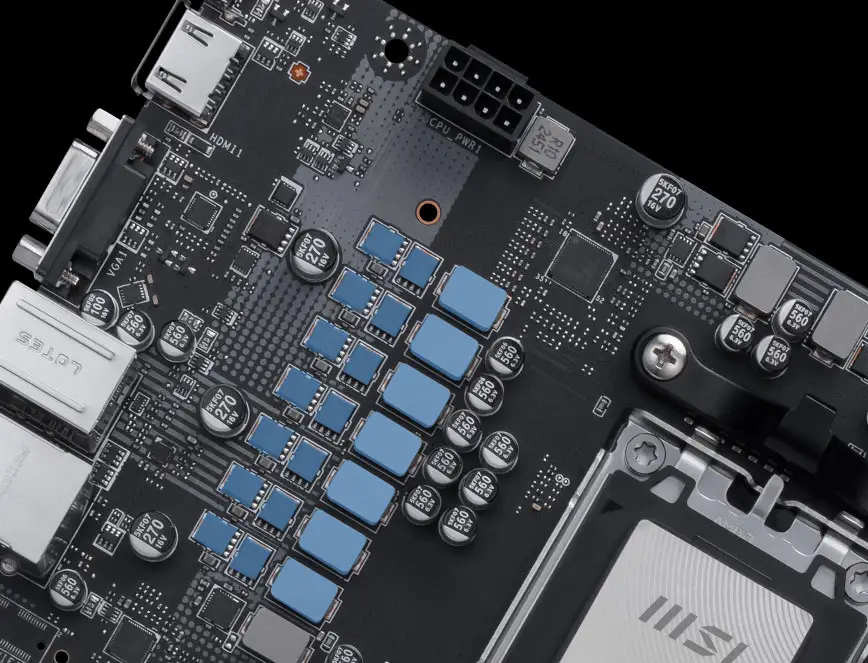 Płyta główna MSI PRO B840M-B została zaprojektowana z solidnym, w pełni cyfrowym systemem zasilania Direct 7+2+1, co gwarantuje stabilną pracę nawet pod dużym obciążeniem. Technologia Core Boost zapewnia precyzyjny i niezawodny transfer prądu do wielordzeniowego procesora, uwalniając jego pełny potencjał. To kluczowe rozwiązanie dla użytkowników, którzy chcą podkręcać swój sprzęt lub po prostu oczekują najwyższej niezawodności.