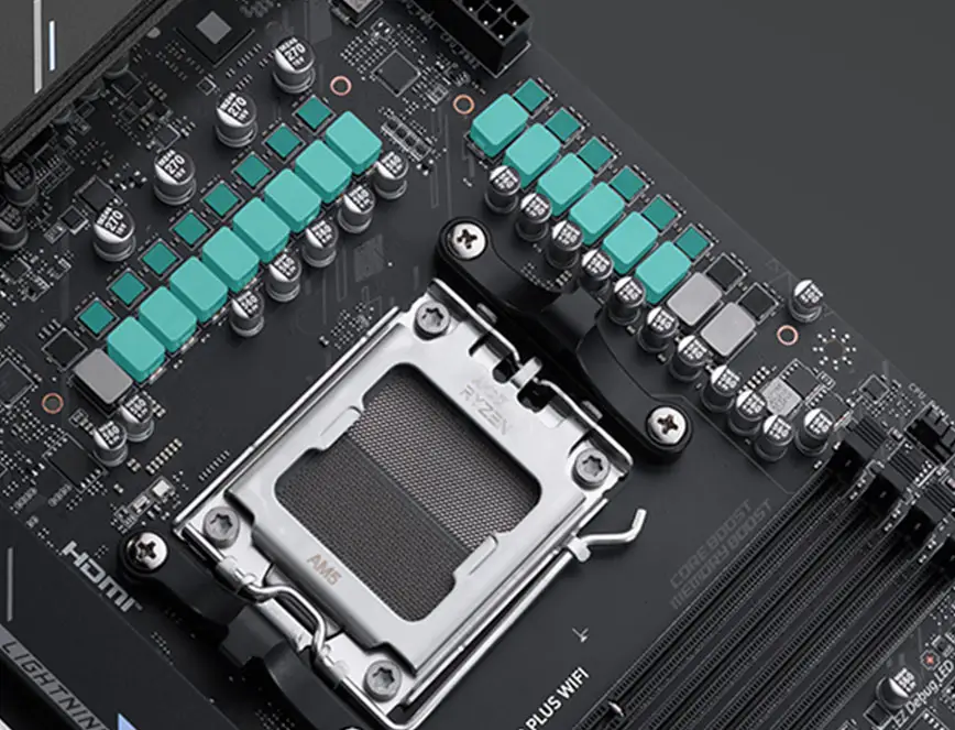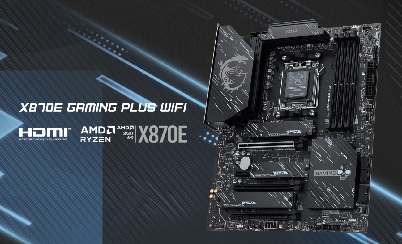 Płyta główna X870E GAMING PLUS WIFI została zaprojektowana z wytrzymałych komponentów, aby zapewnić doskonałe wrażenia z gier. Wyposażona w Wi-Fi 7 i LAN 5G, ultraszybkie porty USB4, rozwiązania PCIe 5.0, dodatkowe zasilanie PCIe oraz ekskluzywne funkcje EZ DIY, jest gotowa do nieprzerwanej, całodobowej rozgrywki z procesorami AMD Ryzen™ serii 9000.