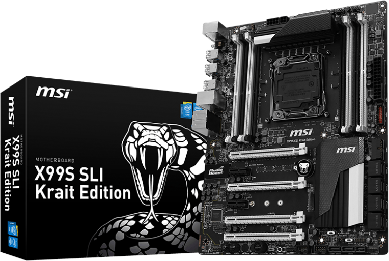 Płyta główna MSI X99S SLI Krait Edition oparta jest na układzie logiki Intel X99 Express i wyposażona w podstawkę LGA2011-3 dla procesora Intel "Haswell-E". Zasilanie model ten czerpie ze standardowego, 24-pinowego gniazda ATX oraz układu 8+4 EPS. Na płycie producent zastosował 12-fazową sekcję zasilania DIGITALL Power VRM, która ma zapewniać moc oraz stabilność wystarczającą nawet w przypadku ekstremalnego podkręcania. Autorski projekt Military Class IV oznacza, że na płycie znajdziemy polimerowe kondensatory, wysokiej klasy dławiki, kondensatory Hi-C oraz aluminiowy kondensator DARK Cap mający gwarantować niski poziom zakłóceń, a także 10-letni okres utrzymywania pierwotnie założonych parametrów pracy.