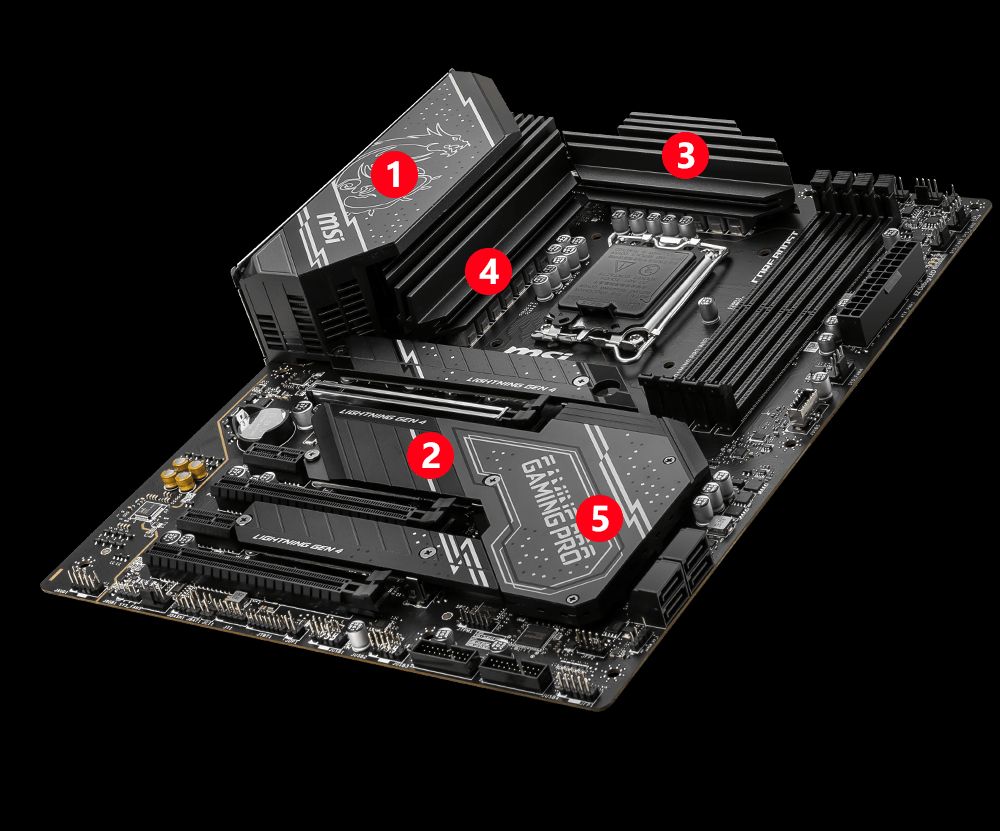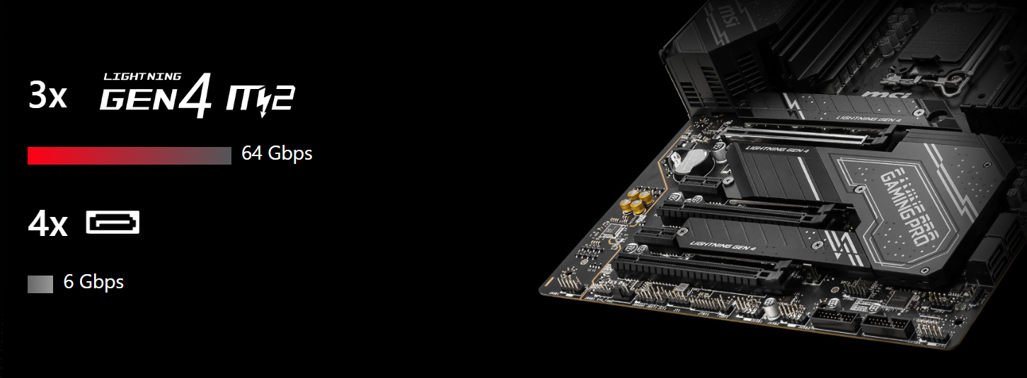 Płyta główna Z790 GAMING WIFI obsługuje wszystkie najnowsze standardy pamięci masowej, co umożliwia użytkownikom podłączenie dowolnego ultraszybkiego urządzenia pamięci masowej. Szybciej rozpoczynaj gry, szybciej wczytuj poziomy i uzyskaj realną przewagę nad wrogami.