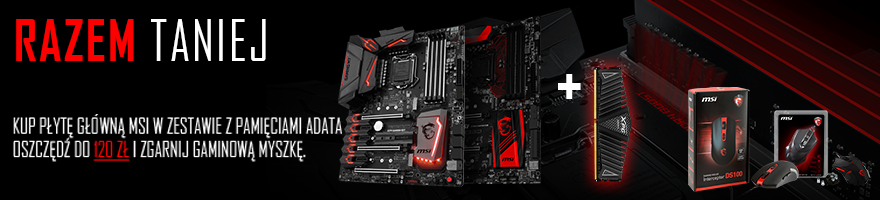 KUP PŁYTĘ GŁÓWNĄ MSI W ZESTAWIE Z PAMIĘCIAMI ADATA OSZCZĘDŹ DO 120 ZŁ I ZGARNIJ GAMINGOWĄ MYSZKĘ.