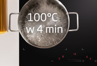 System automatycznego zagotowaniaIdealny do potraw wymagających najpierw szybkiego zagotowania, a następnie podgrzewania lub prażenia. Odpowiednik gotowania na "wolnym ogniu". Dzięki tej funkcji pole grzejne automatycznie obniża temperaturę po określonym czasie. | ![]() |