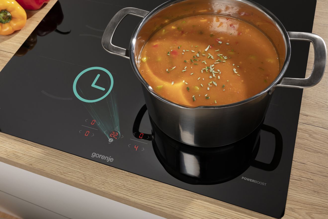 Dzięki płytom grzejnym Gorenje nigdy nie będziesz musiał zgadywać, jak długo właściwie gotujesz jedzenie. Timer jest teraz oddzielony od poziomów wydajności, co ułatwia ustawianie, używanie i monitorowanie. Dedykowane strzałki na wyświetlaczu timera pokazują czas dla każdej strefy, dając Ci pełną kontrolę nad procesem gotowania. Korzystanie z timera jest proste i intuicyjne. Dzięki niemu będziesz gotować całkowicie beztrosko.
