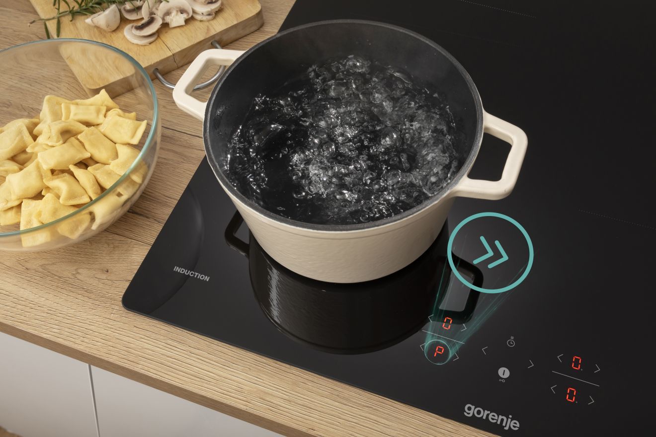 Nowa 23-centymetrowa strefa BigZone na płytach Gorenje to idealne rozwiązanie do dużych garnków. Ta strefa, umieszczona z przodu, zapewnia stałą uwagę podczas gotowania i mieści średni, najczęściej używany rozmiar garnka 23 cm. Większa strefa zapobiega powstawaniu zimnych miejsc w garnku i zapewnia za każdym razem pyszne potrawy. Pożegnaj się z zmaganiami z gotowaniem dzięki nowej bardzo dużej strefie na płytach Gorenje, idealnie rozmieszczonej, aby zmaksymalizować częstotliwość i cel użytkowania.