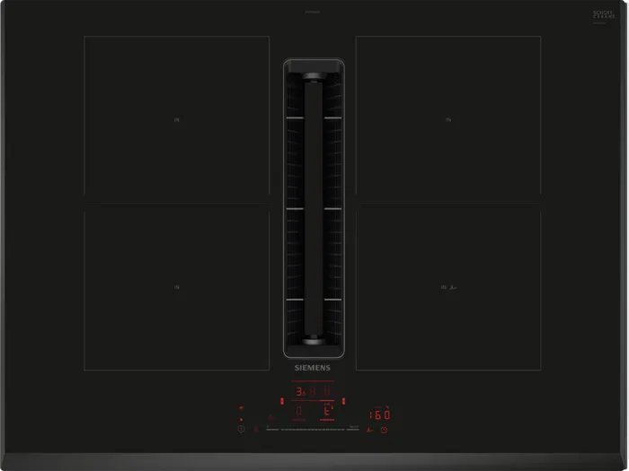 Płyta grzewcza Siemens ED751HQ26E wyposażona jest w cztery strefy gotowania, które wykorzystują technologię indukcyjną, zapewniając szybkie nagrzewanie oraz precyzyjne gotowanie. Dodatkowo, cyfrowy timer umożliwia dokładne kontrolowanie czasu gotowania, co zwiększa komfort użytkowania.