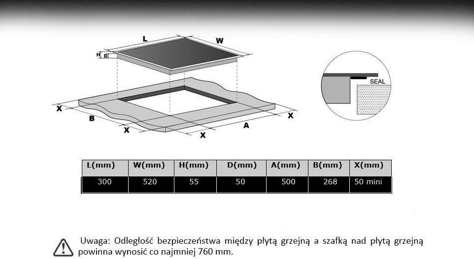 Płyta indukcyjna do zabudowy musi zostać zamontowana i podłączona przez wykwalifikowanego elektryka.