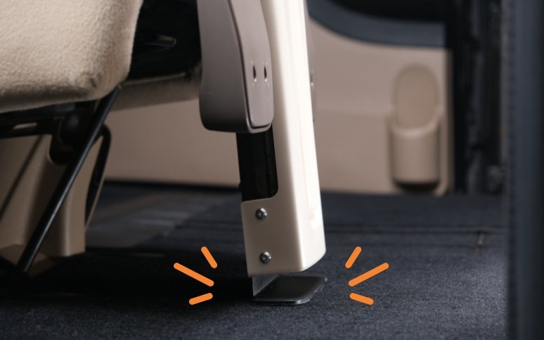 Dzięki smukłej sylwetce, podnóżki zajmują bardzo mało miejsca w pojeździe. Podparcia pod stopy można łatwo podnieść do góry, kiedy potrzebna jest dodatkowa przestrzeń. Wystarczy jeden ruch ręką.