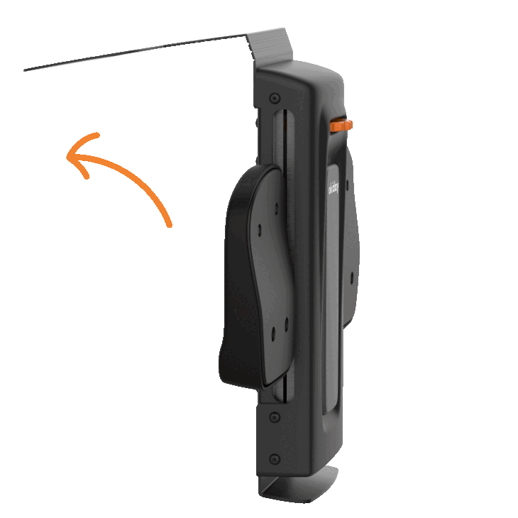 Górna płyta umożliwiająca zamocowanie podnóżka do punktów mocowania ISOFIX jest elastyczna, dzięki czemu adaptuje się z łatwością do geometrii poduszki kanapy, na której znajduje się fotelik.