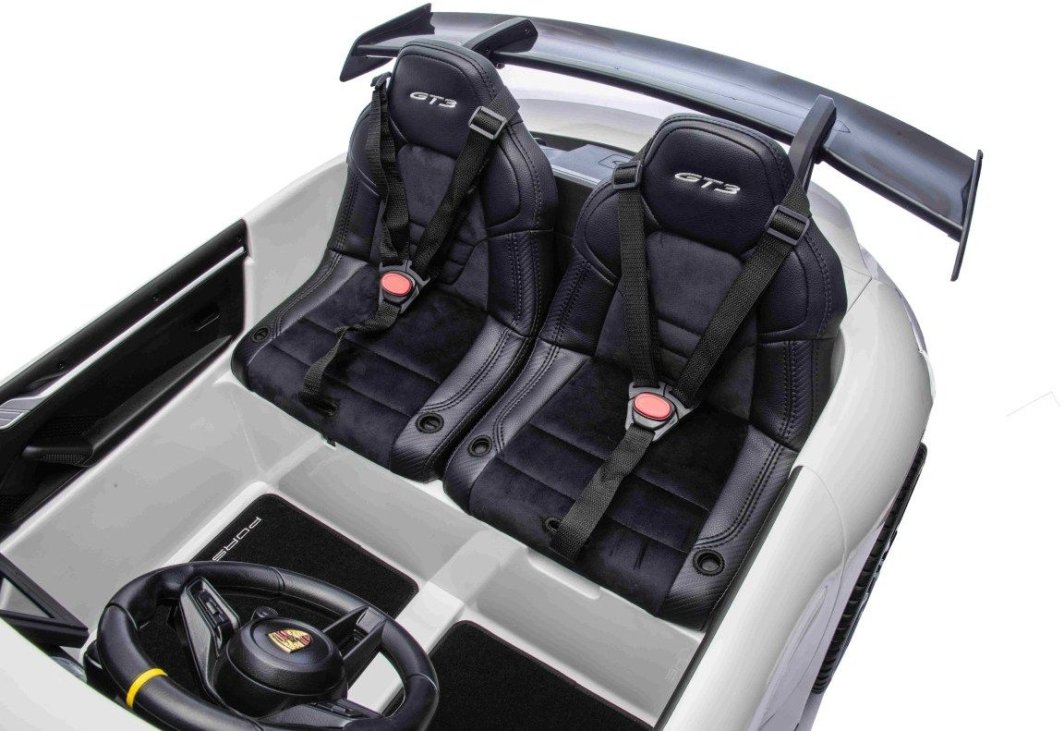 Porsche 911 GT3 oferuje szereg funkcji, które umilą każdą podróż. Dzięki panelowi audio z funkcjami FM, MP3, Bluetooth, USB i AUX, dzieci mogą cieszyć się ulubioną muzyką. Dodatkowo, realistyczne światła LED oraz pilot dla rodzica sprawiają, że jazda staje się jeszcze bardziej ekscytująca.