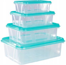 Pojemnik Master Food - KPL to zestaw czterech praktycznych pojemników, które doskonale sprawdzą się w każdej kuchni. Dzięki swojej funkcjonalności, idealnie nadają się do przechowywania zarówno produktów spożywczych, jak i gotowych potraw. Wykonane z wysokiej jakości tworzywa sztucznego, łączą w sobie estetykę i użyteczność, co czyni je niezbędnym elementem każdej kuchni.