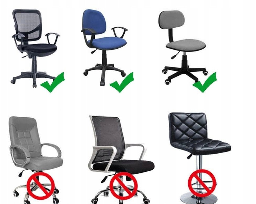 Pokrowiec jest uniwersalny i pasuje do foteli obrotowych o wymiarach: siedzisko 38 - 48 cm, oparcie 38 - 48 cm długości oraz 38 - 46 cm szerokości. Dzięki elastyczności materiału, można go łatwo założyć na różne modele krzeseł, co czyni go wszechstronnym rozwiązaniem.