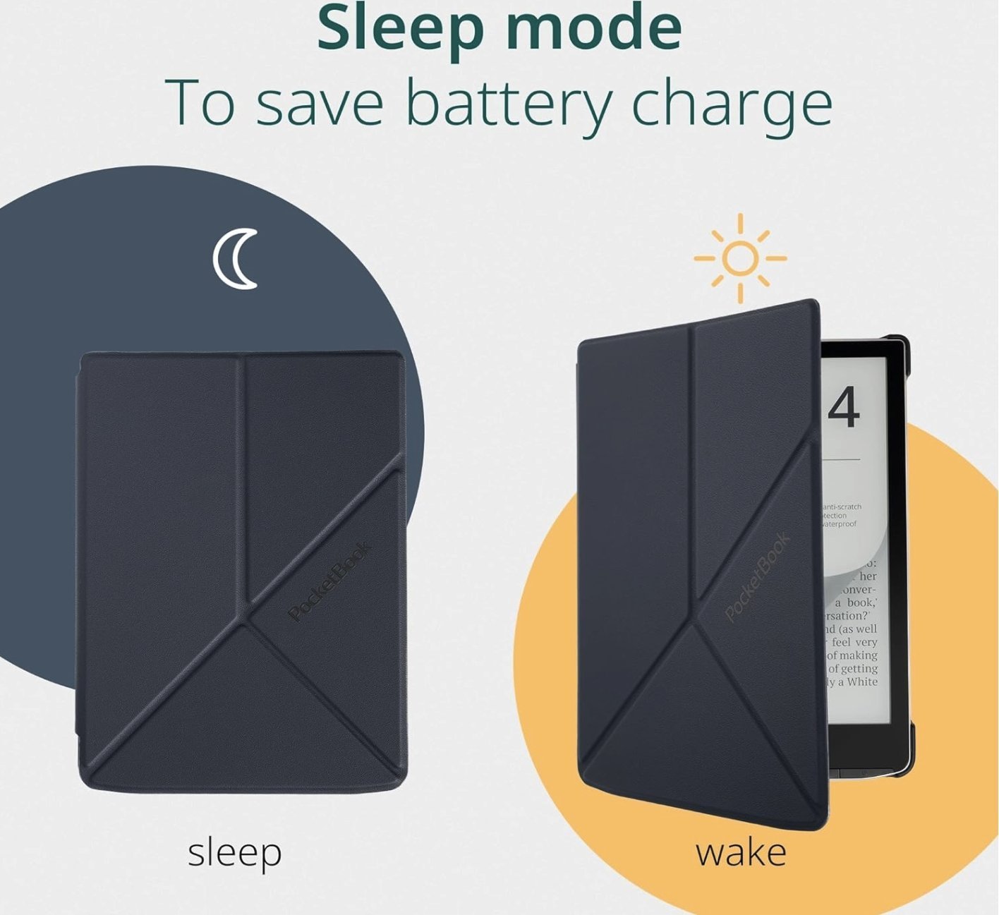 Etui zostało wyposażone w funkcję Sleep-mode, która pozwala na oszczędzanie baterii czytnika. Zamknięcie okładki automatycznie przełącza czytnik w tryb uśpienia, a otwarcie natychmiast budzi go do działania.