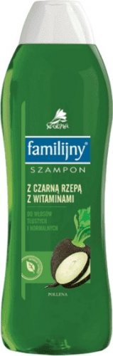 Szampon FAMILIJNY z czarną rzepą i witaminami to doskonałe rozwiązanie dla włosów tłustych i normalnych. Jego receptura zawiera wyciąg z czarnej rzepy, która odżywia i wzmacnia włosy. Dodatkowo receptura szamponu została wzbogacona kompleksem witamin: A, E, NNKT (F) i B, poprawiających ich wygląd.