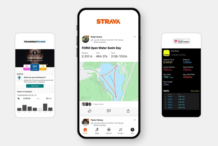 Po zakończeniu pływania dane są automatycznie synchronizowane z aplikacją mobilną FORM (iOS/Android). Dzięki temu uzyskujesz pełny raport treningowy, który zawiera: