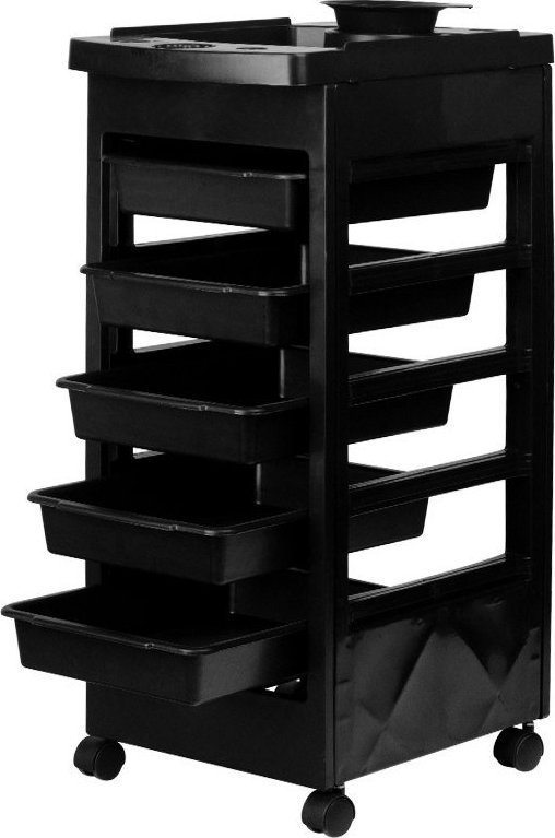 Kluczem do efektywnej pracy jest porządek. Pomocnik 8-5 został wyposażony w pięć pojemnych, wysuwanych kuwetek, które idealnie nadają się do segregowania i przechowywania narzędzi, grzebieni, klipsów czy kosmetyków. Dzięki solidnej podstawie i wbudowanym kółkom, mebel jest w pełni mobilny, co pozwala na swobodne przesuwanie go między stanowiskami i dostosowywanie do bieżących potrzeb salonu.