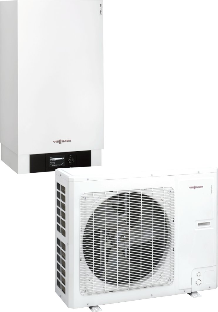 Pompa ciepła Vitocal 100-S składa się z dwóch jednostek – zewnętrznej i wewnętrznej. Dzięki kompaktowym wymiarom, jednostkę wewnętrzną można zainstalować w piwnicy lub pomieszczeniu gospodarczym, a jednostkę zewnętrzną można zawiesić na ścianie lub ustawić na podłożu, co daje dużą elastyczność w montażu.