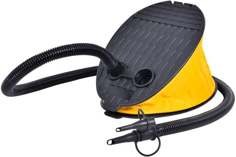 Funkcjonalna pompka nożna Dzięki specjalnej konstrukcji pompowanie odbywa się za pomocą nacisku stopą.Wymiary pompki: 19x16cm.W zestawie jest wężyk i 2 uniwersalne końcówki.Pompka nożna sprawdzi się doskonale do basenów, pontonów, zabawek dmuchanych.