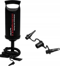 Ręczna pompka tłokowa do materaca INTEX, 36 cm, czarna. Przygotuj się do sezonu letniego i zaopatrz się w niezbędne dodatki podczas wypoczynku we własnym ogrodzie, nad jeziorem lub morzem! Dmuchane materacy oraz baseny to przede wszystkim komfort i wygoda: można je łatwo przechować, a ich ponowne rozłożenie, a także przygotowanie trwa zaledwie chwilę. Wystarczy nadmuchać je powietrzem, by móc się relaksować na plaży albo w wodzie. Na rynku znajduje się bardzo duży wybór gadżetów do dmuchanych materacy oraz basenów, które jeszcze bardziej ułatwiają, a także usprawniają korzystanie z nich. Jednym z niezastąpionych akcesoriów jest z całą pewnością wytrzymała, solidna i wydajna pompka. Takim produktem jest tłokowa, ręczna pompka marki Intex. Produkt o długości 36 cm został wykonany z wytrzymałego tworzywa sztucznego.
