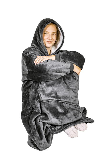 Ciesz się ciepłem i komfortem z naszym telewizyjnym ponczem z kapturem Hoodie! To niezwykle miękkie telewizyjne ponczo, podszyte jest delikatnym, ciepłym futerkiem, ma długie, wygodne szerokie rękawy i duży kaptur, dzięki któremu poczujesz się jeszcze przytulniej. Odpoczywając w ponczu możesz mieć swobodne ręce, jednocześnie utrzymując całe ciało w cieple.
