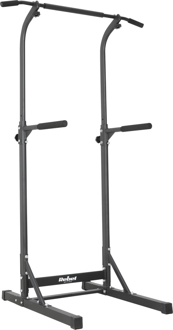 Poręcz treningowa wielofunkcyjna z drążkiem REBEL ACTIVE to solidny sprzęt do domowych i profesjonalnych treningów siłowych. Wytrzymała stalowa konstrukcja, regulowana wysokość oraz dwa rozstawy uchwytów drążka sprawiają, że jest idealnym wyborem dla osób ceniących wszechstronność i stabilność. Pozwala efektywnie rozwijać mięśnie klatki, ramion, pleców i brzucha.