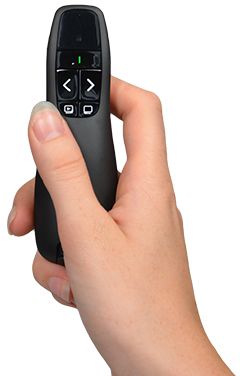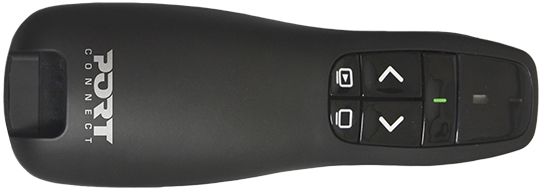 Bezprzewodowy wskaźnik laserowy 2,4 GHz posiada intuicyjne przyciski sterujące do prezentacji: następny / poprzedni; czarny ekran ; rozpocząć pokaz slajdów; Włącznik / wyłącznik; itp.