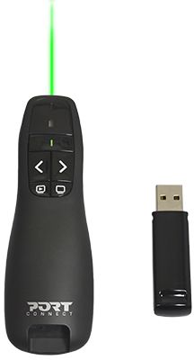 Aby użyć tego wskaźnika laserowego, wystarczy podłączyć odbiornik USB do komputera (który jest przechowywany w prezenterze dzięki dedykowanemu slotowi). Wskaźnik laserowy jest zielony.