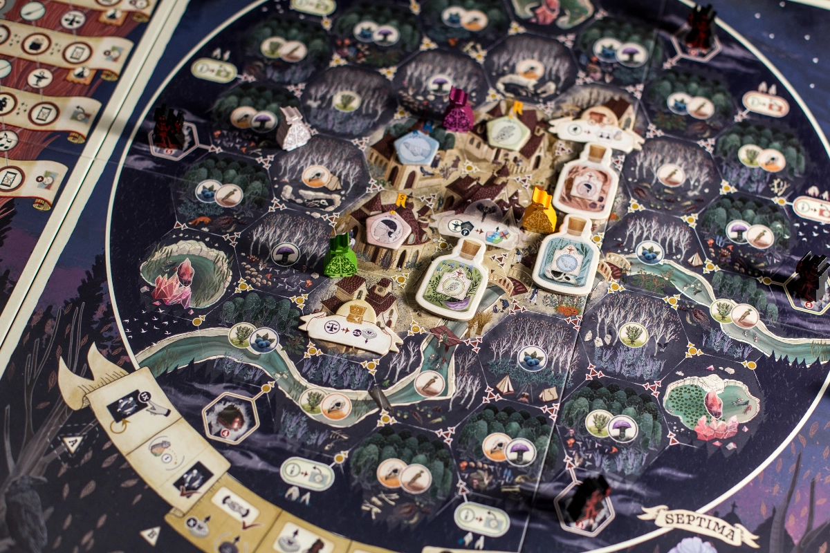 Rozgrywka w Septimie opiera się na mechanice tajnego, symultanicznego wyboru akcji. Gracze prowadzą swoje wiedźmy, aby zbierać składniki, warzyć eliksiry, leczyć chorych mieszkańców i rzucać uroki. Kluczowa jest decyzja, czy działać samotnie, czy koordynować akcje z innymi. Wybranie tej samej akcji co rywale przynosi dodatkowe bonusy, jednak wspólne czarowanie szybko wzbudza nieufność mieszkańców i ściąga na was niebezpieczeństwo.
