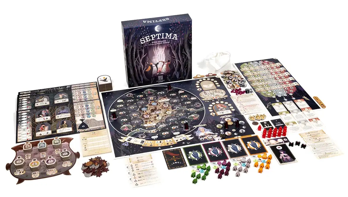 Septima to rywalizacyjna, pełna interakcji gra planszowa ze stajni Mindclash Games, w której gracze wcielają się w przywódców zgromadzeń czarownic. Przeniesiesz się do świata magii, eliksirów i niebezpiecznych procesów o czary. Twoim celem jest pokierowanie swoim sabatem, zdobycie uznania i ostatecznie przejęcie tytułu Septimy - pierwszej wśród wiedźm.