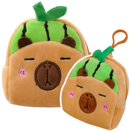 Portfelik Pluszowy Z Brelokiem Kapibara Arbuz Zielony 9,5 x 8 cm